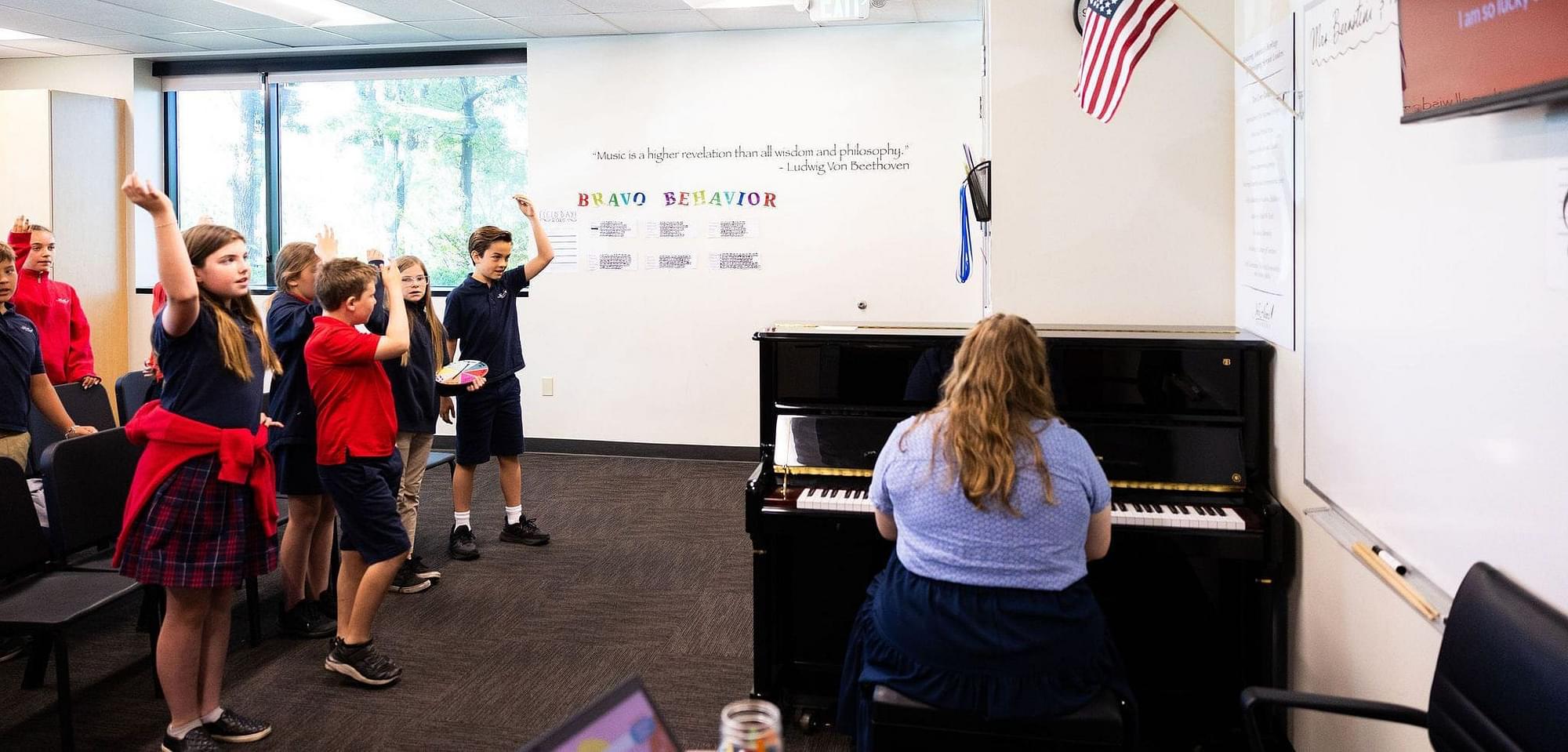 As part of their core instruction, Elementary scholars attend music class for at least one hour each week with times varying by campus. Scholars are mentored by passionate experts in the discipline and are exposed to great classical works and the historical contributions of great musicians in society. Making and exploring music in a play-based, joyful, and interactive way, our music program, utilizes dance, movement, body percussion, simple instruments, stories, and choral arrangement to provide instruction on technique, performance, and basic musical theory. Music and the Arts remain a constant focal point for the Academy.