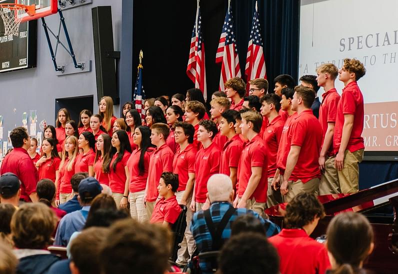 The arts are essential to shaping well-rounded servant leaders. Middle school scholars explore Art, Drama, Music, and PE through the Exploratory Wheel, while high school scholars fulfill their Visual & Performing Arts credits beginning in 9th grade. Advanced Band, Choir, Drama, and Art courses allow scholars to refine their talents, with our premier choir, Virtus™, performing in the community and on annual trips that blend expression with service.